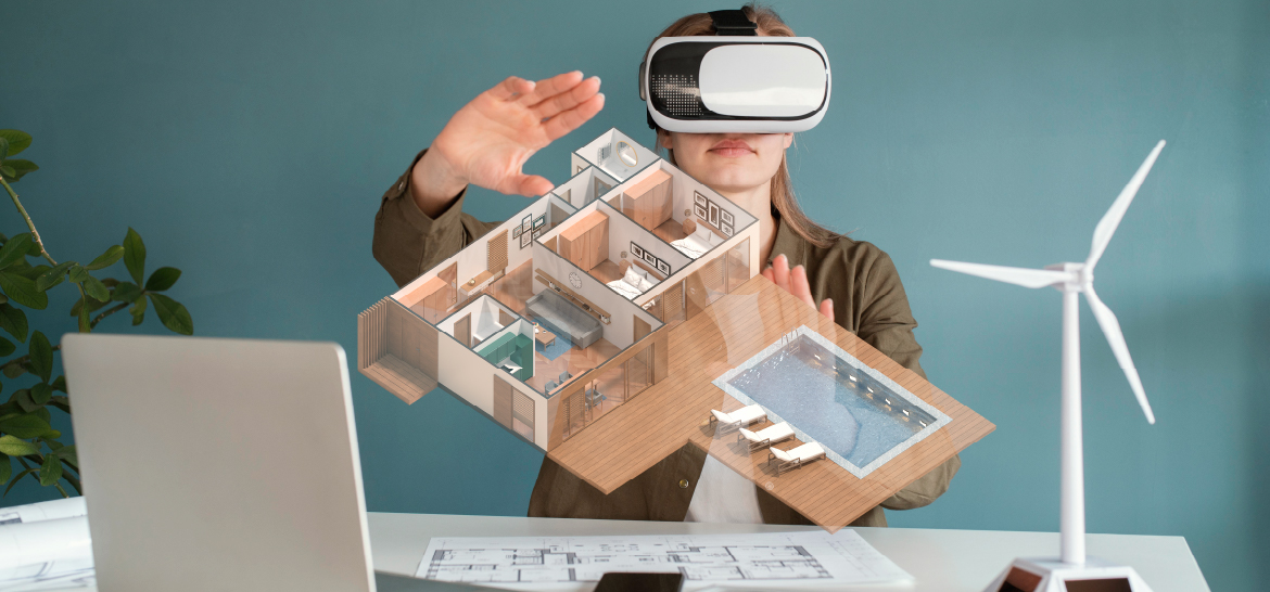 2-)İnteraktif 3D Modelleme:VR projeleri, binaların veya gayrimenkullerin 3D modellerini içerebilir. Bu, kullanıcıların farklı açılardan gayrimenkulu görmelerine ve mekanın tasarımını incelemelerine olanak tanır.